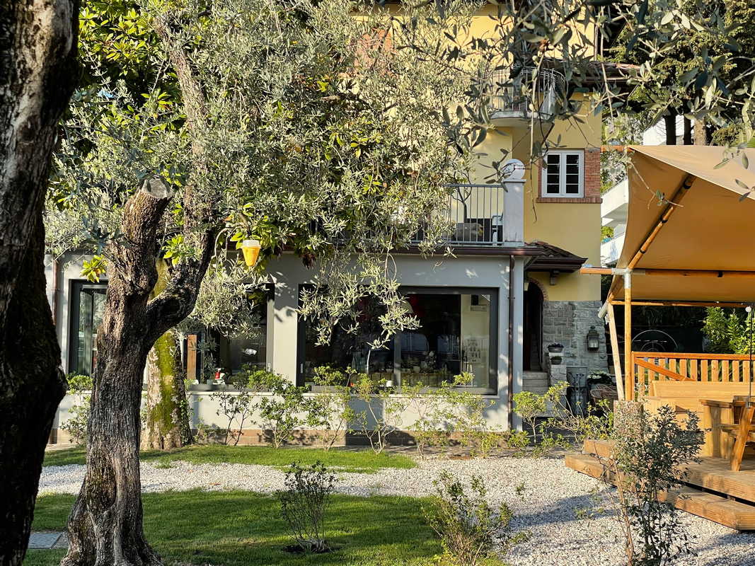 Eine von Grün umgebene Terrasse
